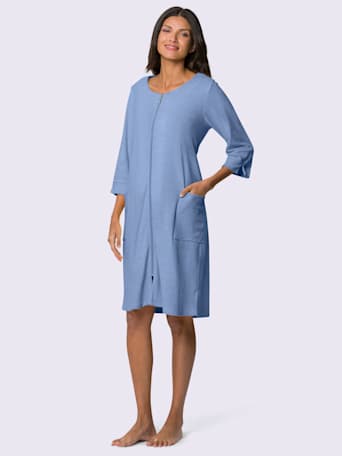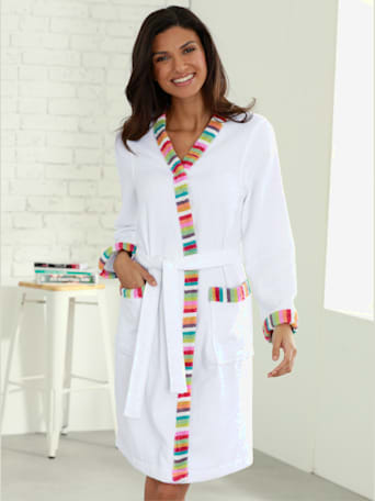 Rose poudré, bleu ciel, gris perle, prune ou écru : les peignoirs femme se déclinent dans des teintes douces et féminines, faciles à assortir à une chemise de nuit ou un pyjama. Quelques détails comme un ruban satiné, une broderie discrète ou un biais contrasté ajoutent une touche raffinée sans en faire trop. Un essentiel du dressing d’intérieur, pour allier douceur et bien-être chaque jour.