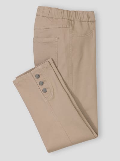 Avec leur longueur sous le genou ou mi-mollet, les pantacourts mettent en valeur la jambe sans la découvrir totalement. Taille élastiquée, ceinture plate, poches discrètes, base droite ou fendue sur le côté : chaque détail est pensé pour conjuguer style et aisance. Certains modèles sont dotés d’un lien à nouer ou de petits boutons fantaisie pour un rendu féminin et moderne.