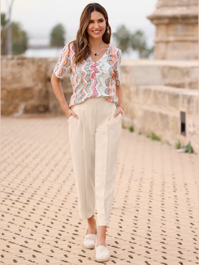Le t-shirt à col V séduit par sa simplicité élégante et sa capacité à allonger visuellement le cou. C’est un choix idéal pour les femmes de 50 ans et plus qui recherchent un haut à la fois confortable et valorisant. Qu’il soit uni, imprimé ou agrémenté de petits détails fantaisie, le t-shirt col V s’intègre facilement dans une garde-robe quotidienne tout en apportant une touche féminine sans effort.